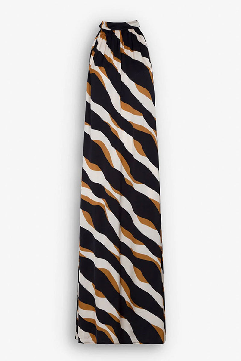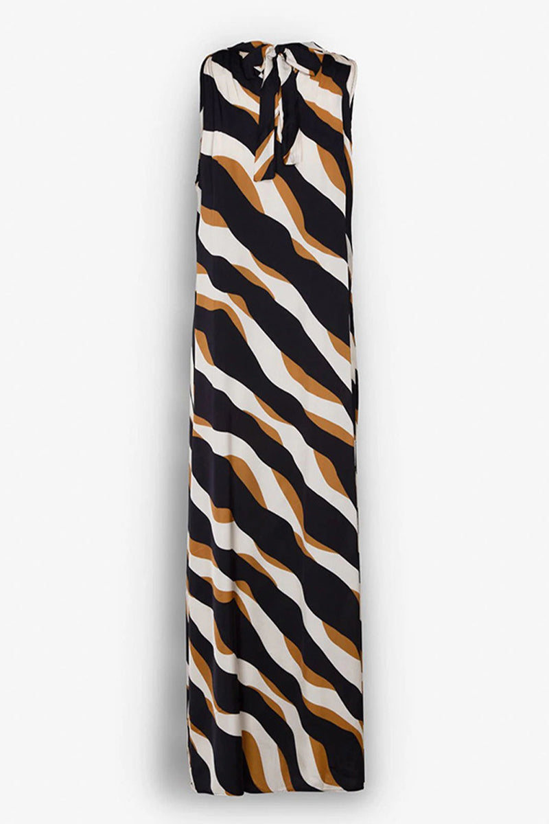 Aurora® | Casual daily striped print lace-up dresses with contrast halter neck and single tier skirt
