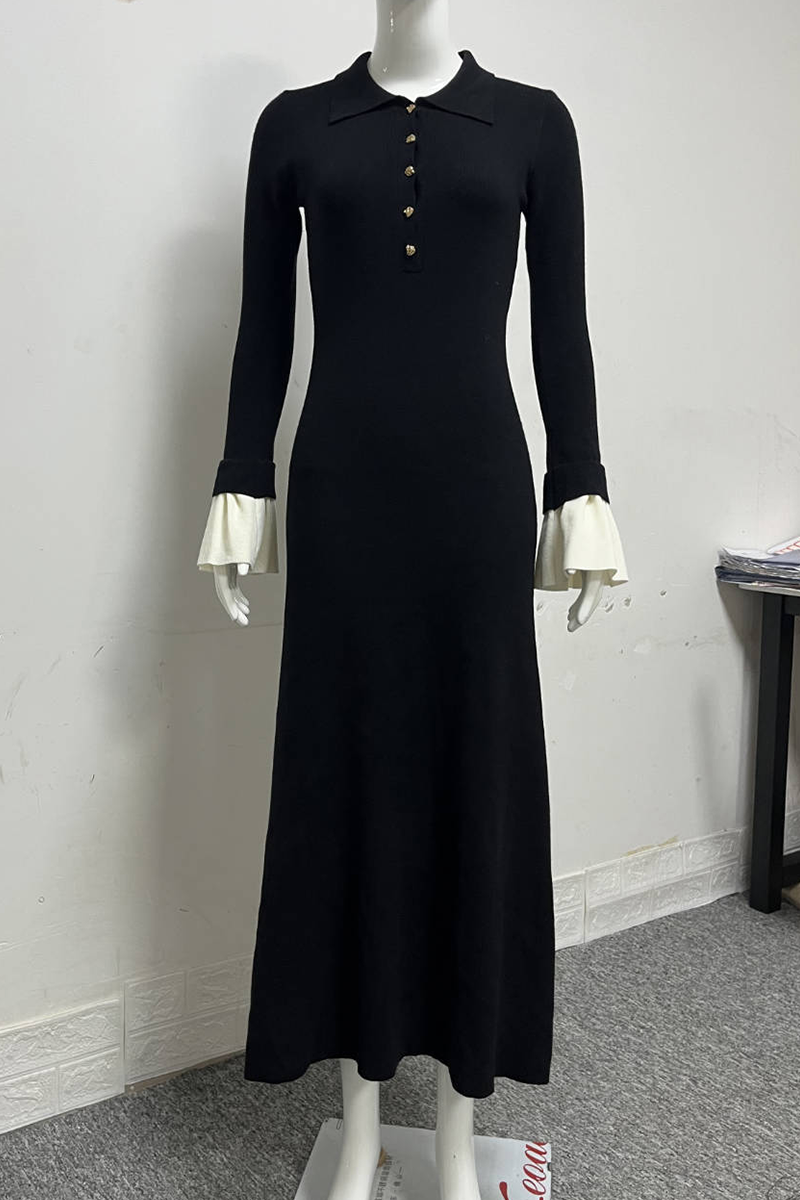 Klara® | Elegant Ruffle Braid Contrast O-neck Waist Skirt Dresses