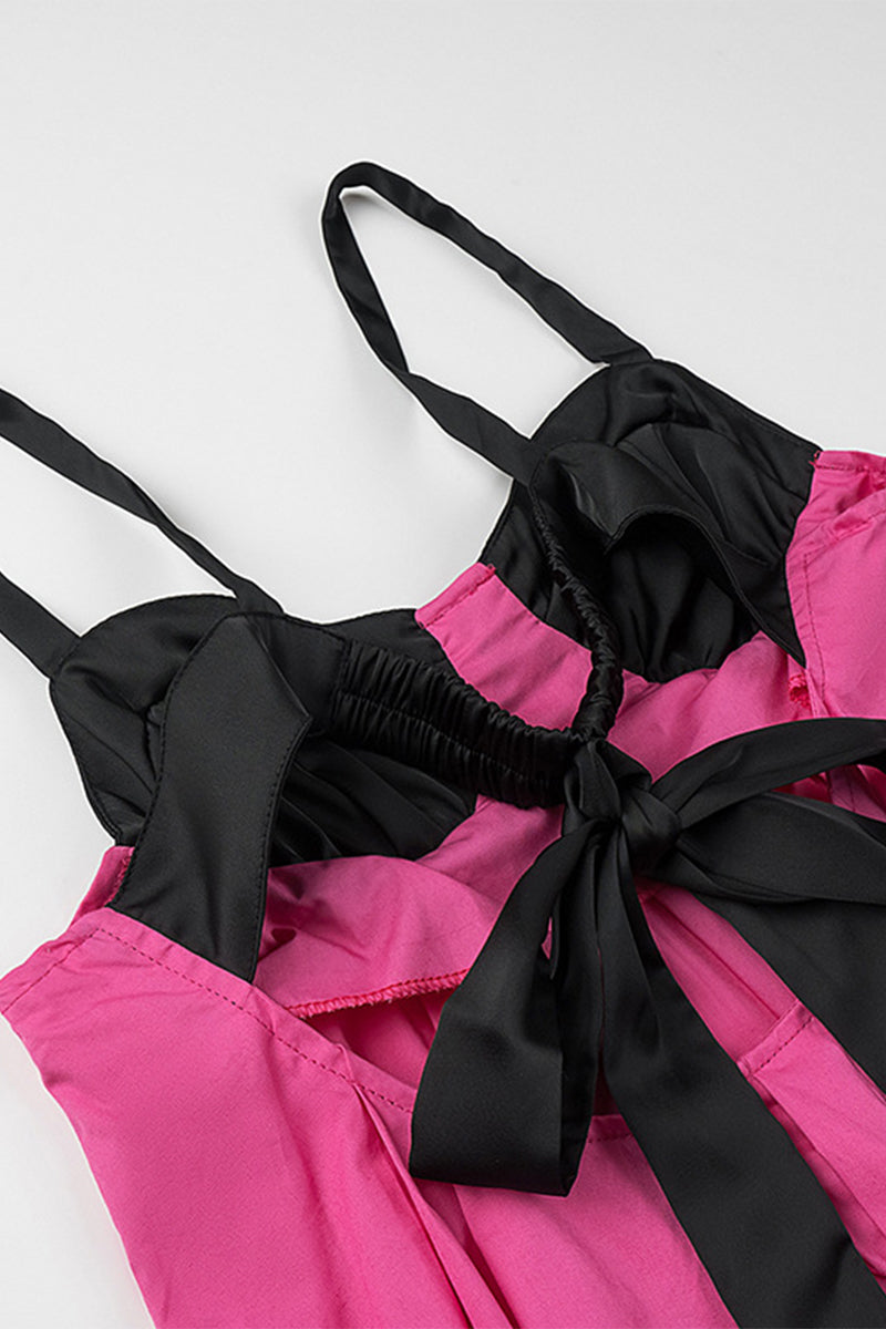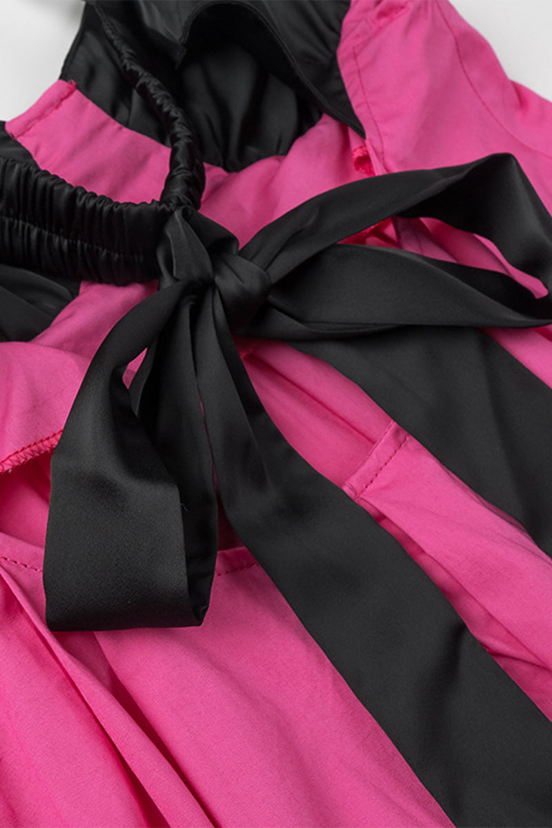 Laia® | Casual solid patchwork dresses with bow and contrast V-neck