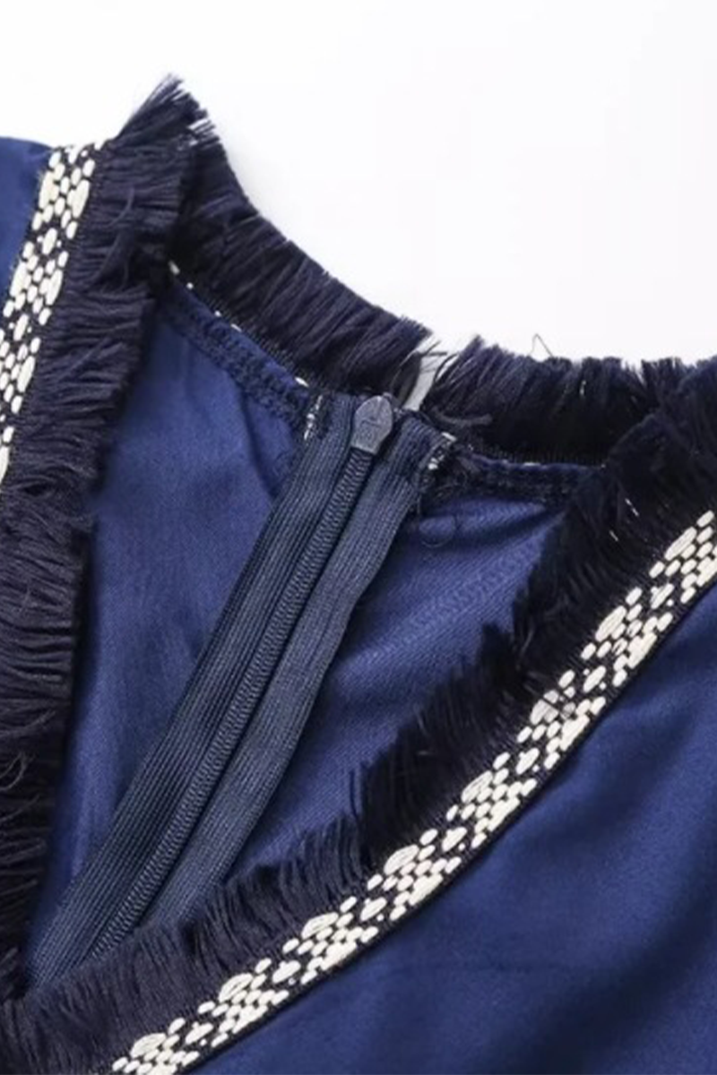 Linda® | Elegant solid color sleeveless patchwork dresses with fringe trim and V-neck