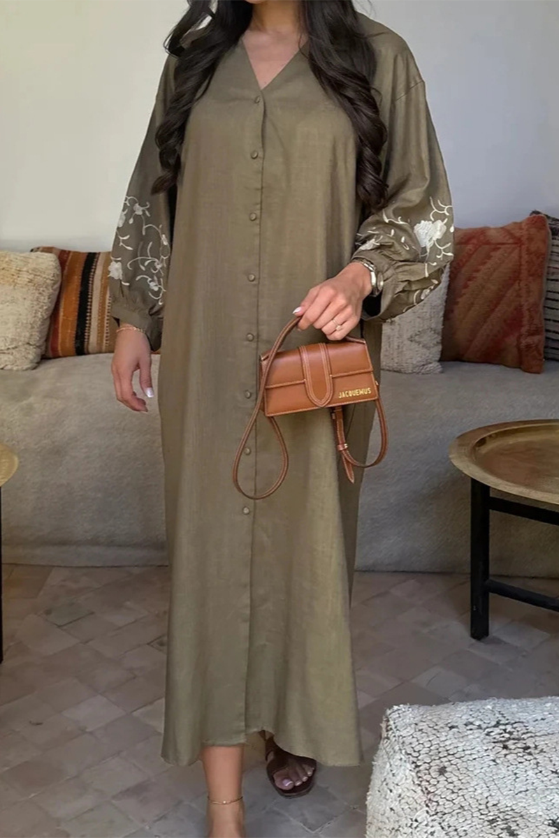 Natacha® | Casual floral buckle patchwork V-neck A-line dresses