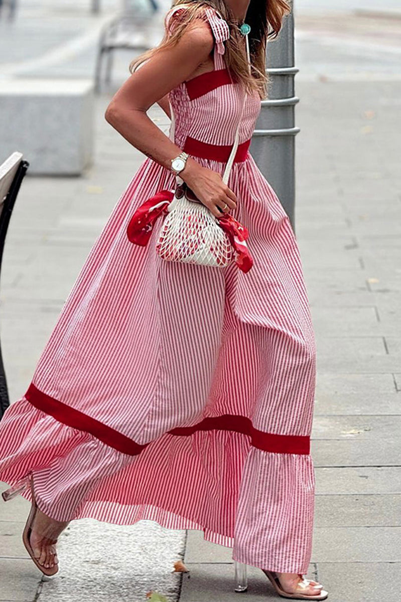 Quintina® | Casual street dresses with striped print, lace-up, patchwork contrast and sling dress with square neckline