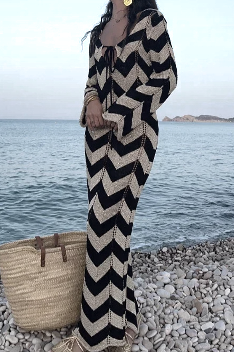 Ursula® | Sexy color block dresses with lace up V neck single tier skirt