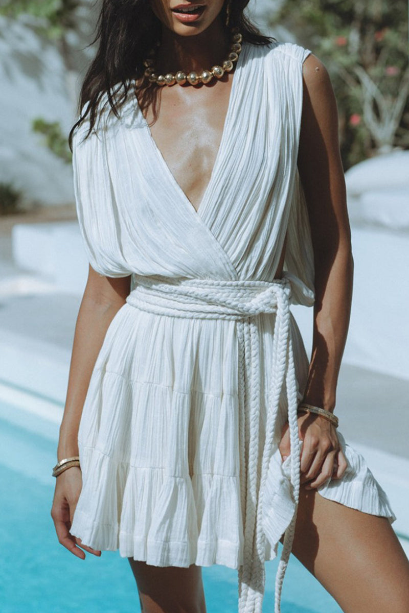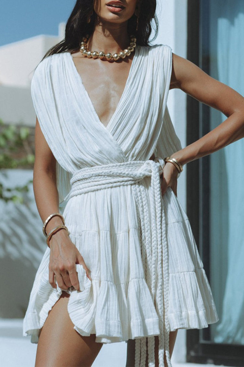 Xenia® | Sexy daily solid color backless sleeveless lace-up V-neck dresses