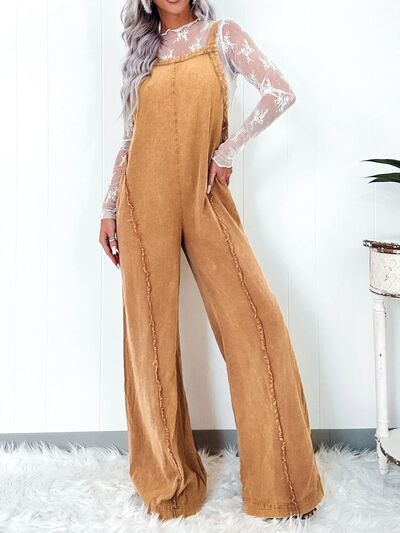 Araceli® | Wide leg denim jumpsuit with square neckline