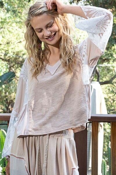 Gabriela® | Blouse with lace detail and V-neck and flared sleeves