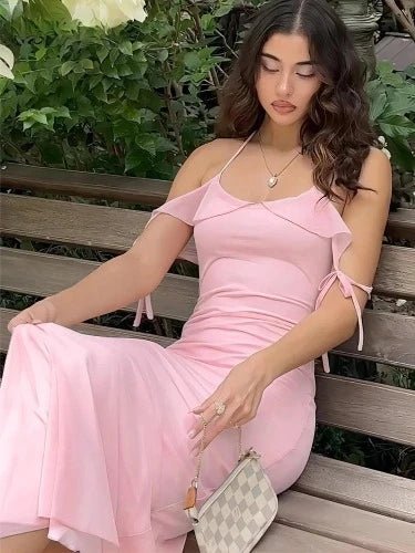 Miranda® | Long off-the-shoulder dress in pink with a halterneck design